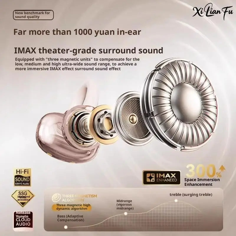 Note: The waterproof performance is for daily liquid splashing. Do not immerse the earphones in liquid. 1. Detachable accessories, let you shine as you please; 2. No-touch, open-ear clip design; 3. Crafted to prevent sound leakage, less than other open-ear headphones; 4. Audio-grade surround sound, unique algorithm for enhanced performance; 5. Hearing protection system, no ear damage even after prolonged use; 6. App-linked AI function, your smart AI assistant Product list:one size(black,white,purple,pink)